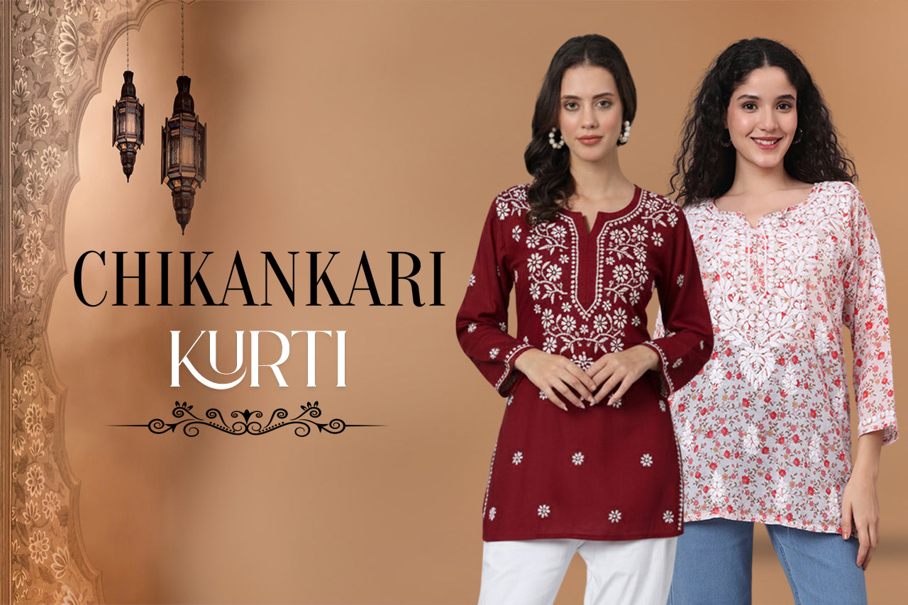 Women Hand Embroidered Chikankari Chanderi Short Kurti-AL4090 Beige