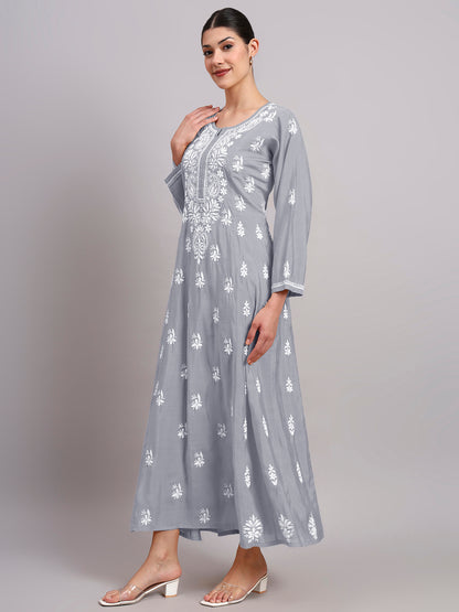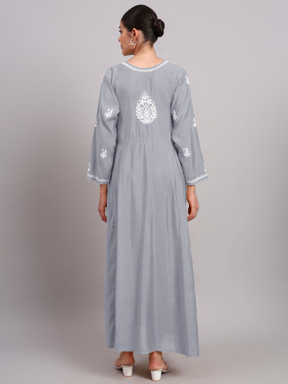 Hand Embroidered Chikankari Chanderi Jalabiya-AL4088 Grey