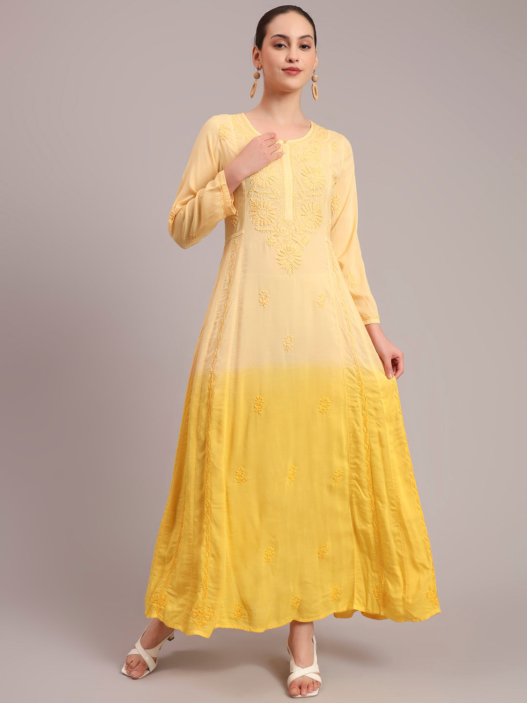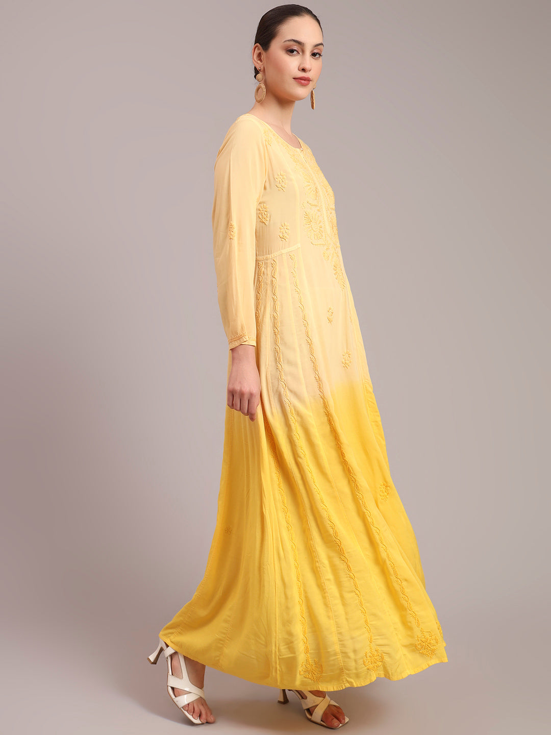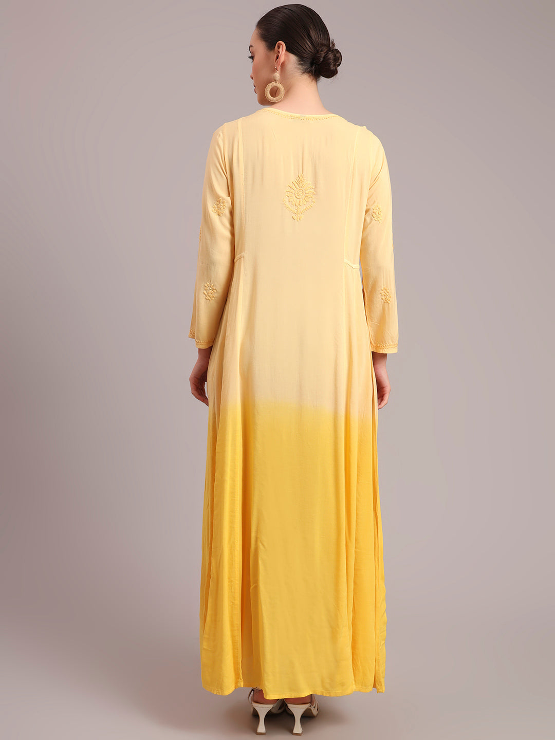 Hand Embroidered Chikankari Modal Ombre Jalabiya-AL4018 Yellow