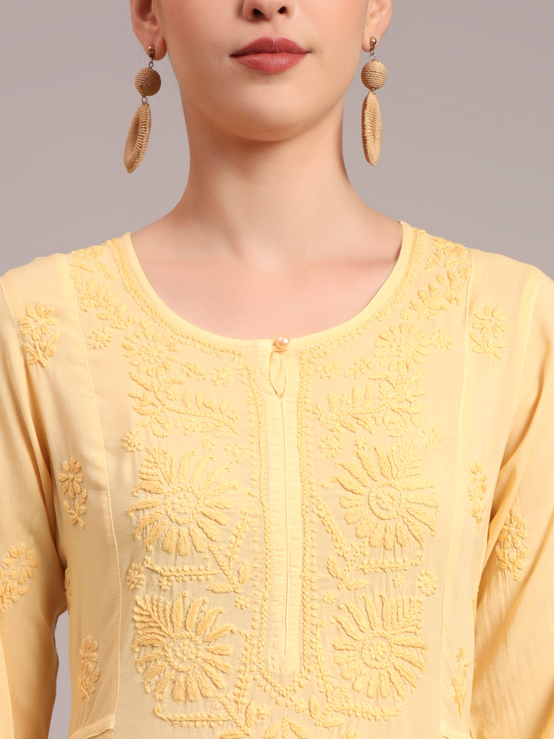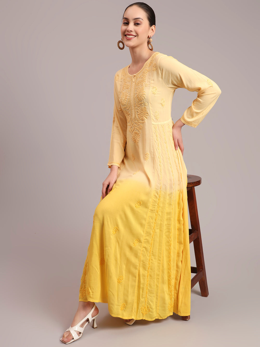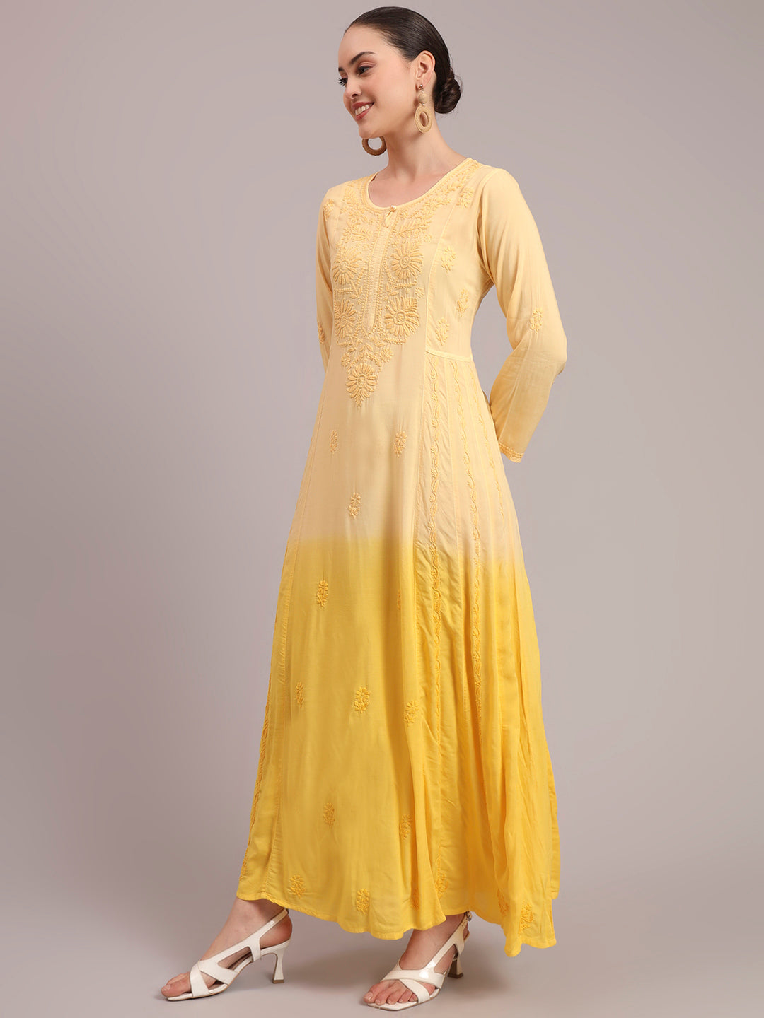 Hand Embroidered Chikankari Modal Ombre Jalabiya-AL4018 Yellow