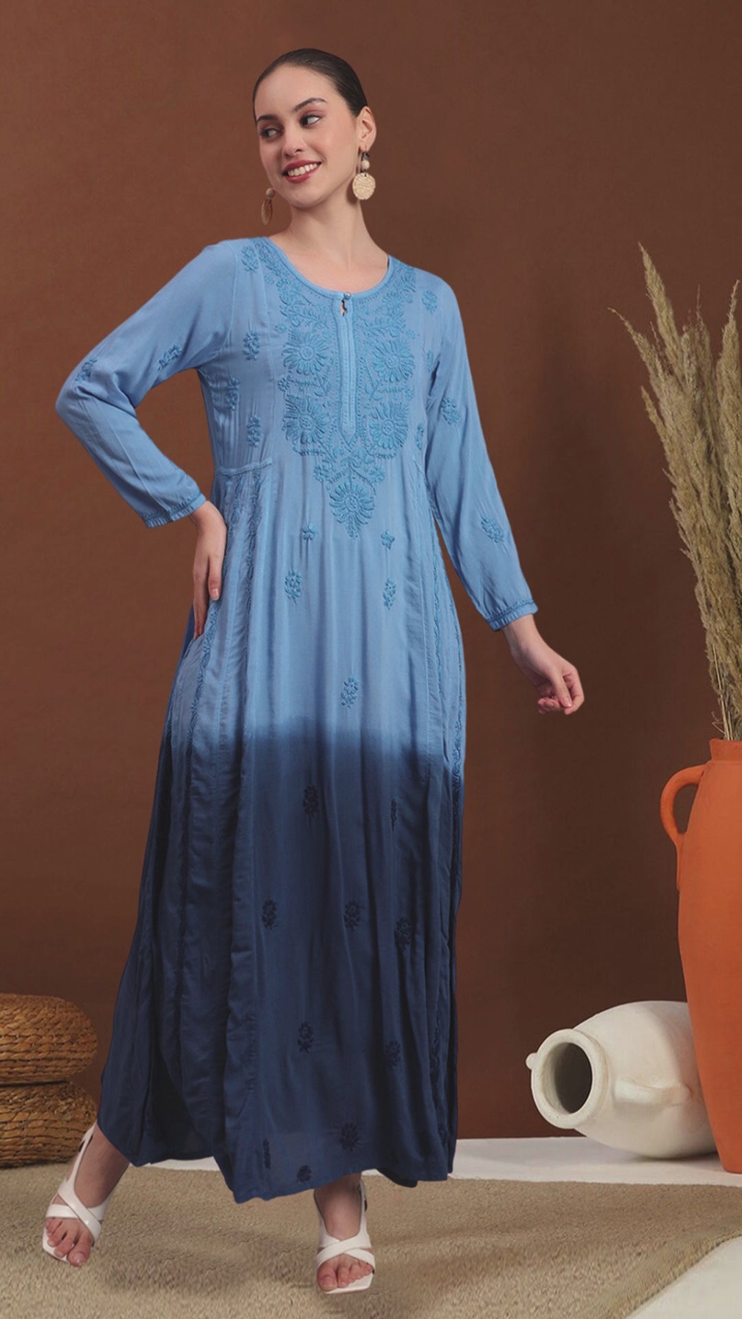 https://cdn.shopify.com/videos/c/o/v/d7c0dd1b0f7c406591dfbb4023af80e2.mp4The Hand Embroidered Chikankari Modal Fabric Ombre Jalabiya features intricate hand-embroidery in the traditional Chikankari style on soft, luxurious modal fabric. The piece is designed with a stunning ombre color gradient, transitioning seamlessly from light to dark shades. It has long sleeves, a round neck, and a relaxed fit, making it both elegant and comfortable. This timeless garment combines the rich heritage of Indian embroidery with a modern, flowing silhouette, perfect for any special occasion or refined casual wear.