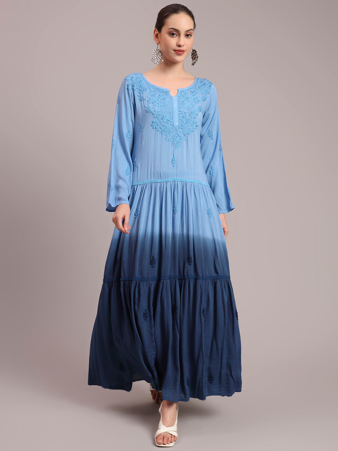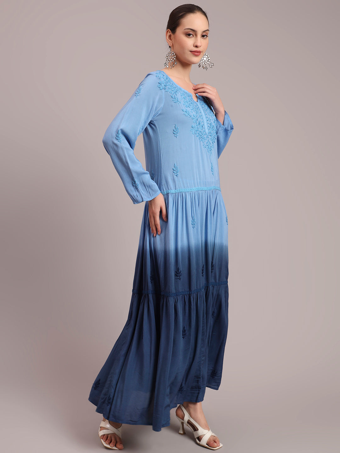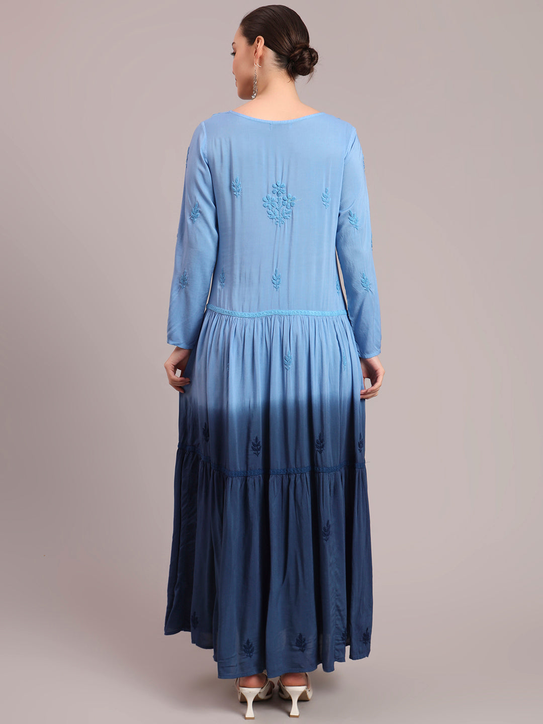 Hand Embroidered Chikankari Modal Ombre Jalabiya-AL4047 Blue