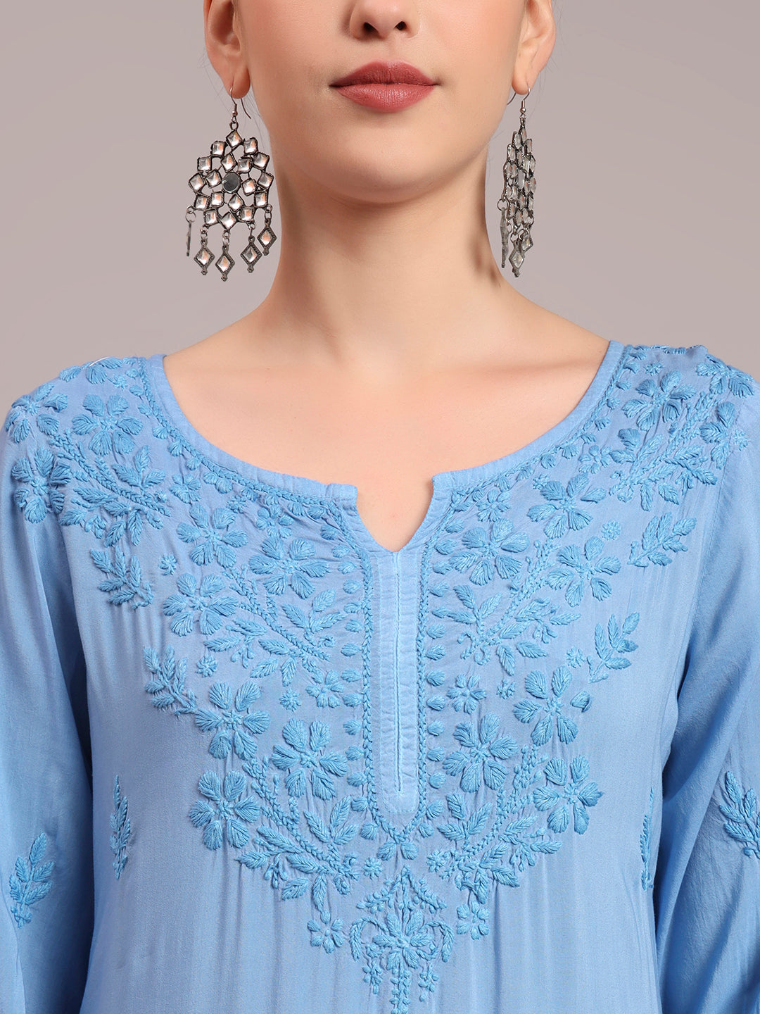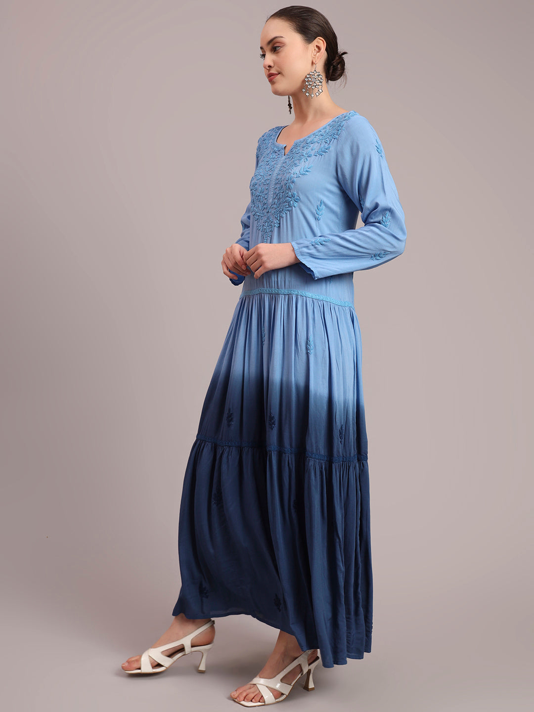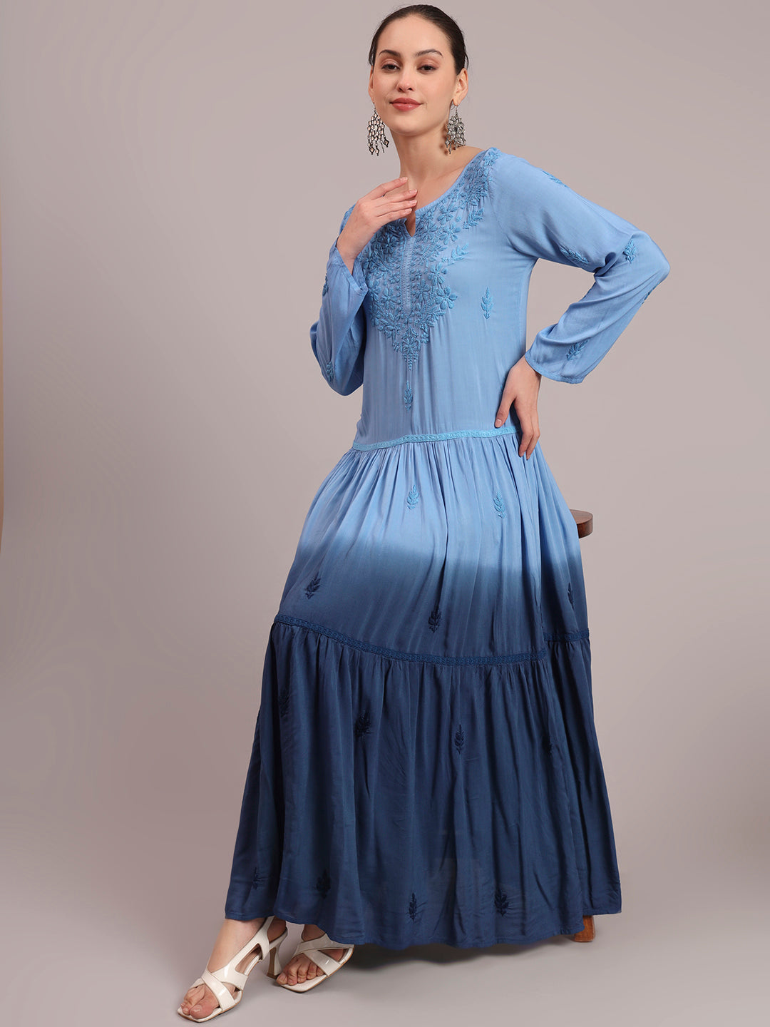 Hand Embroidered Chikankari Modal Ombre Jalabiya-AL4047 Blue