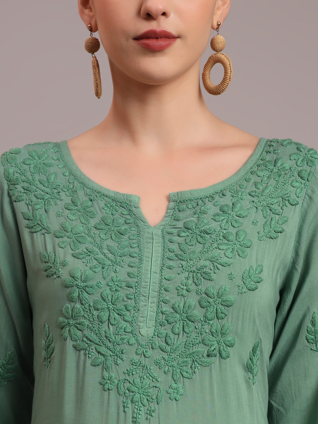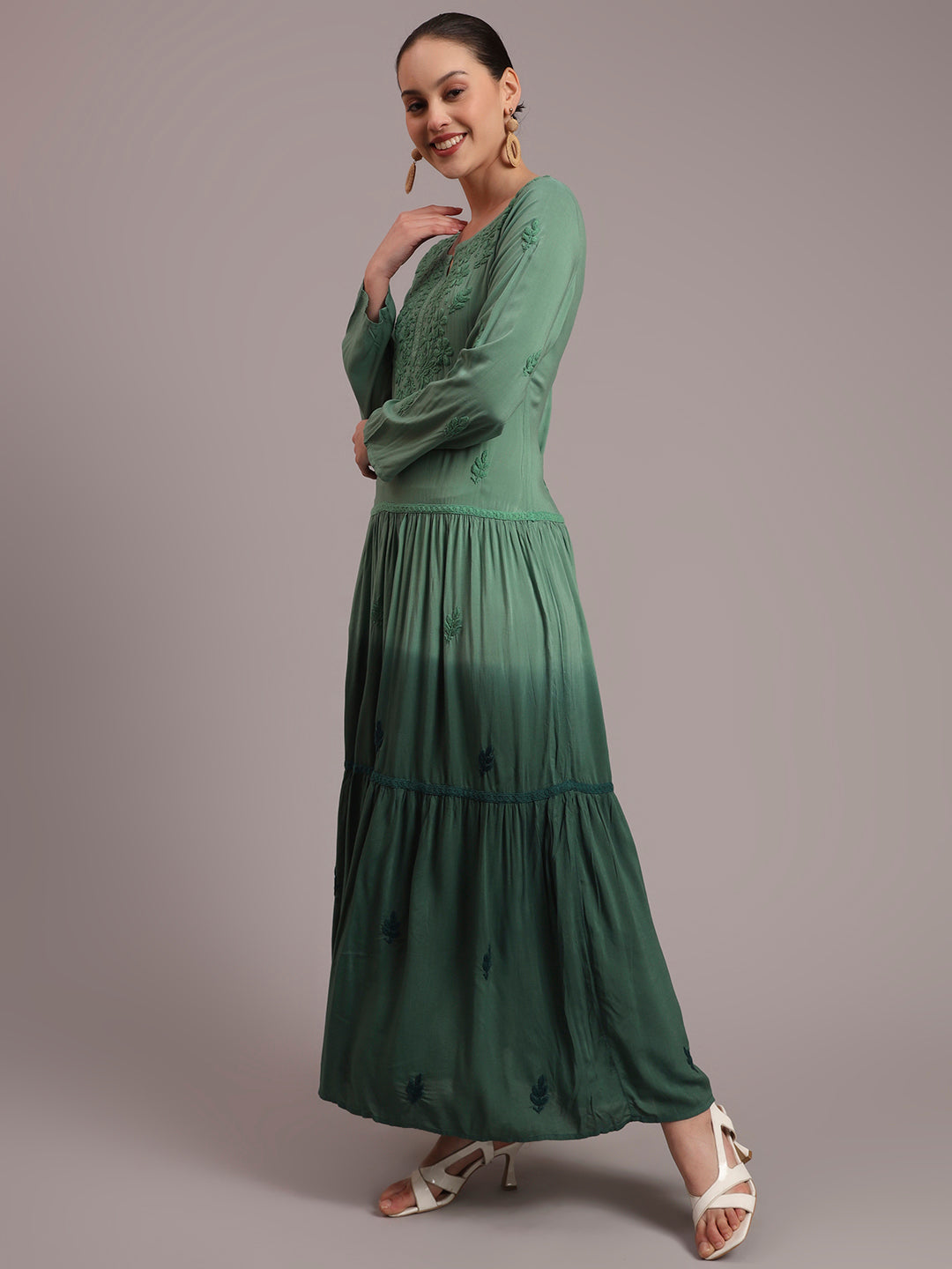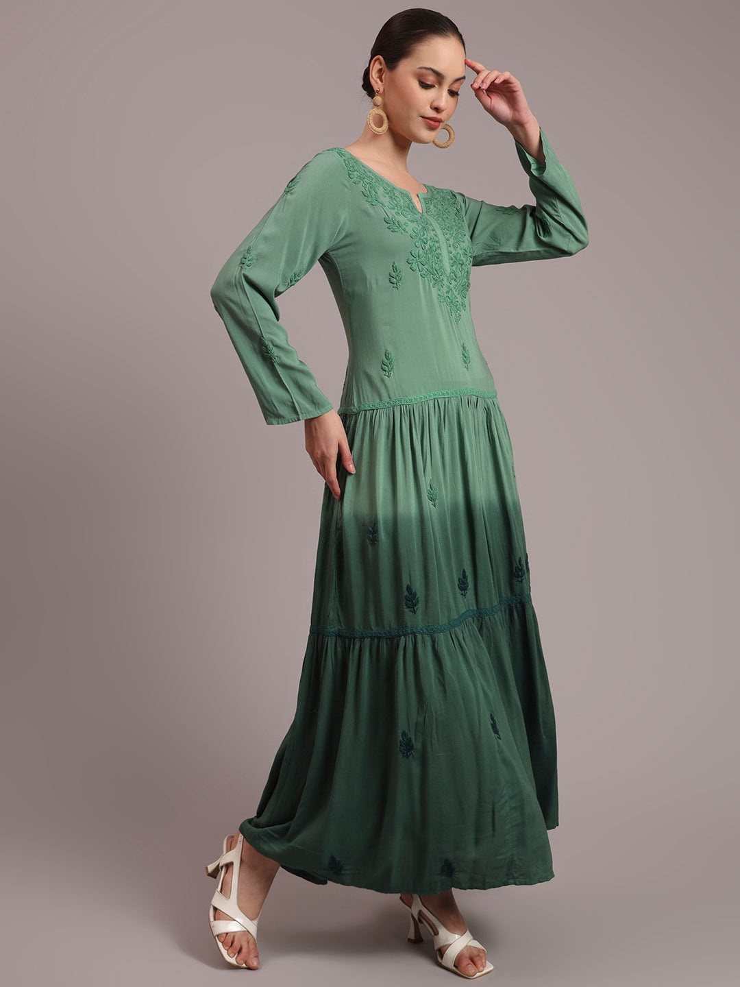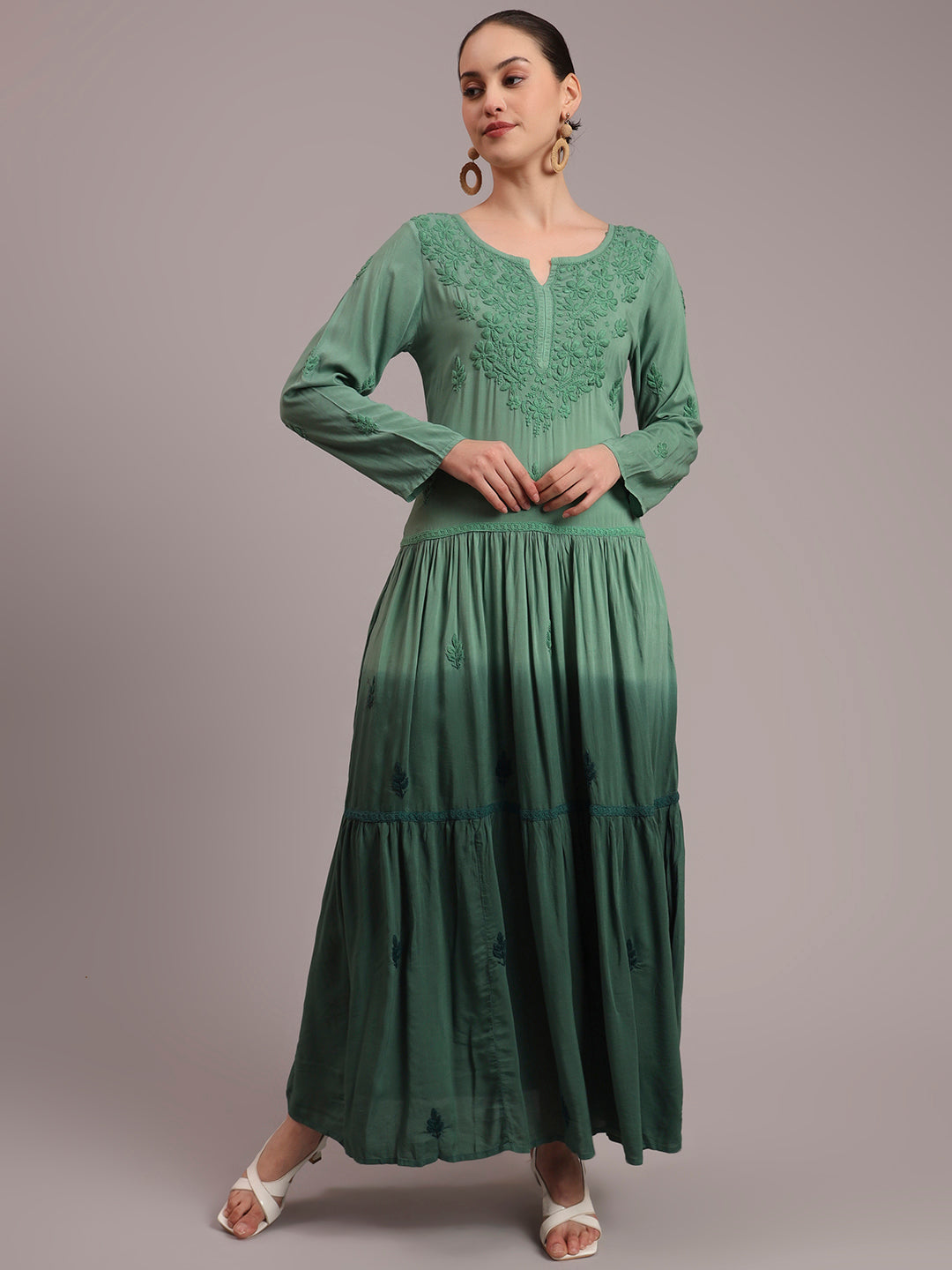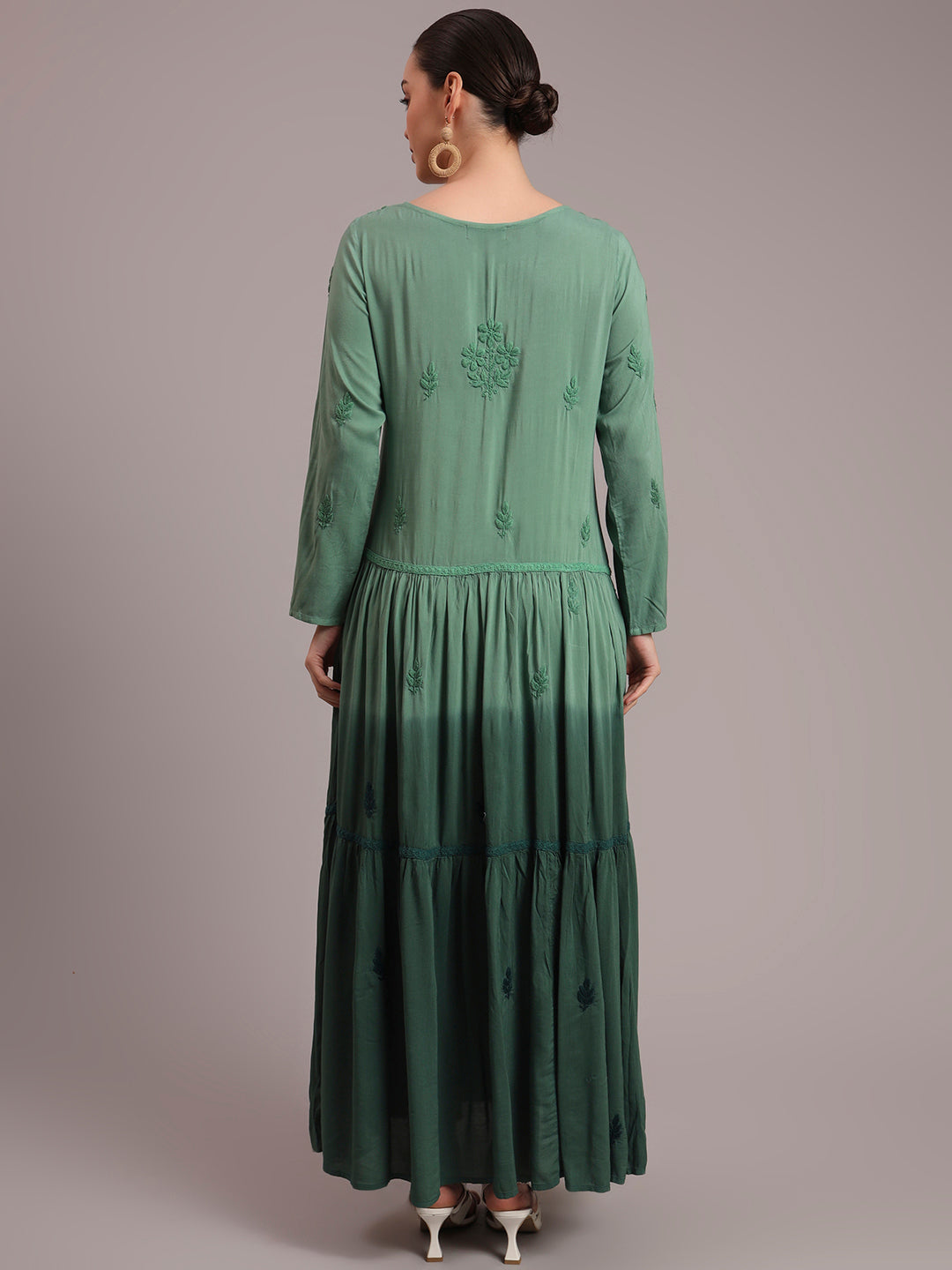 Hand Embroidered Chikankari Modal Ombre Jalabiya-AL4047 Green