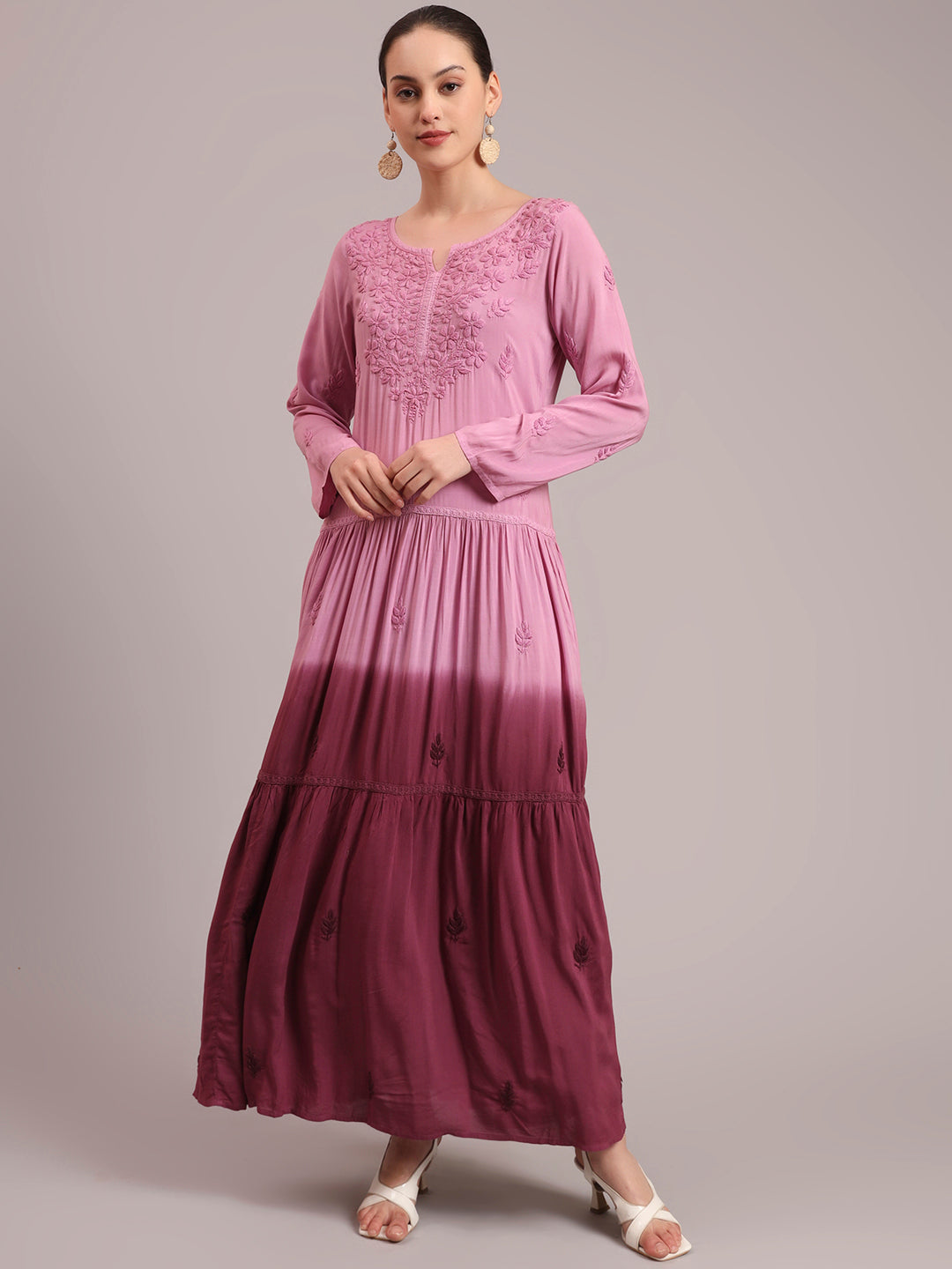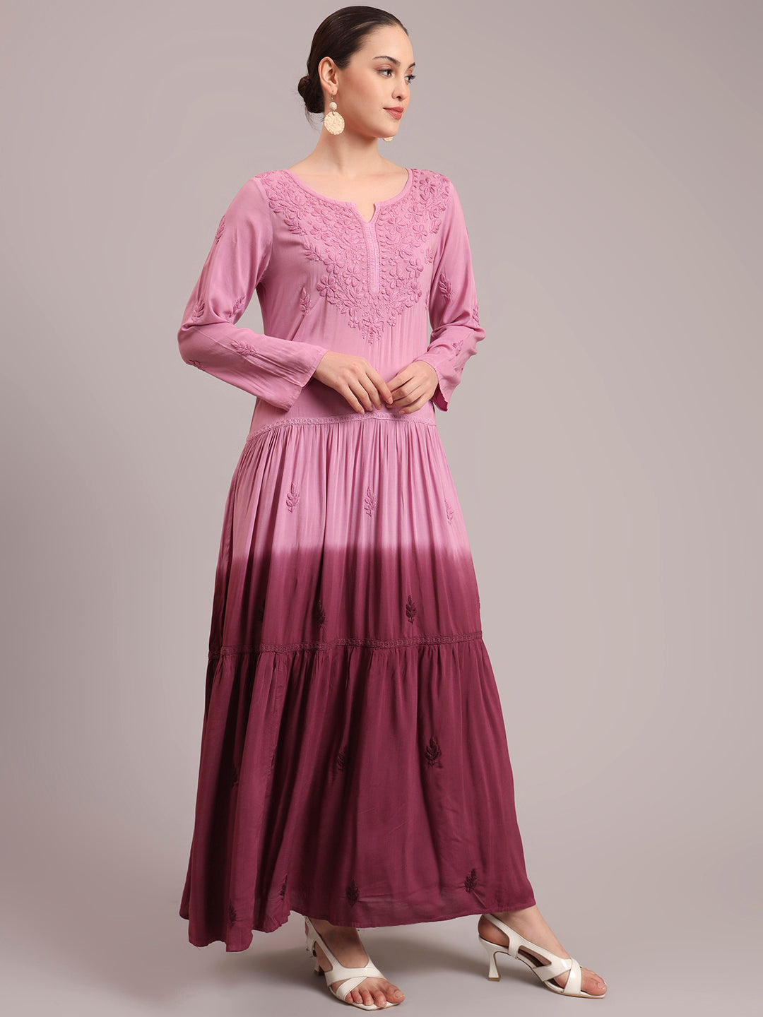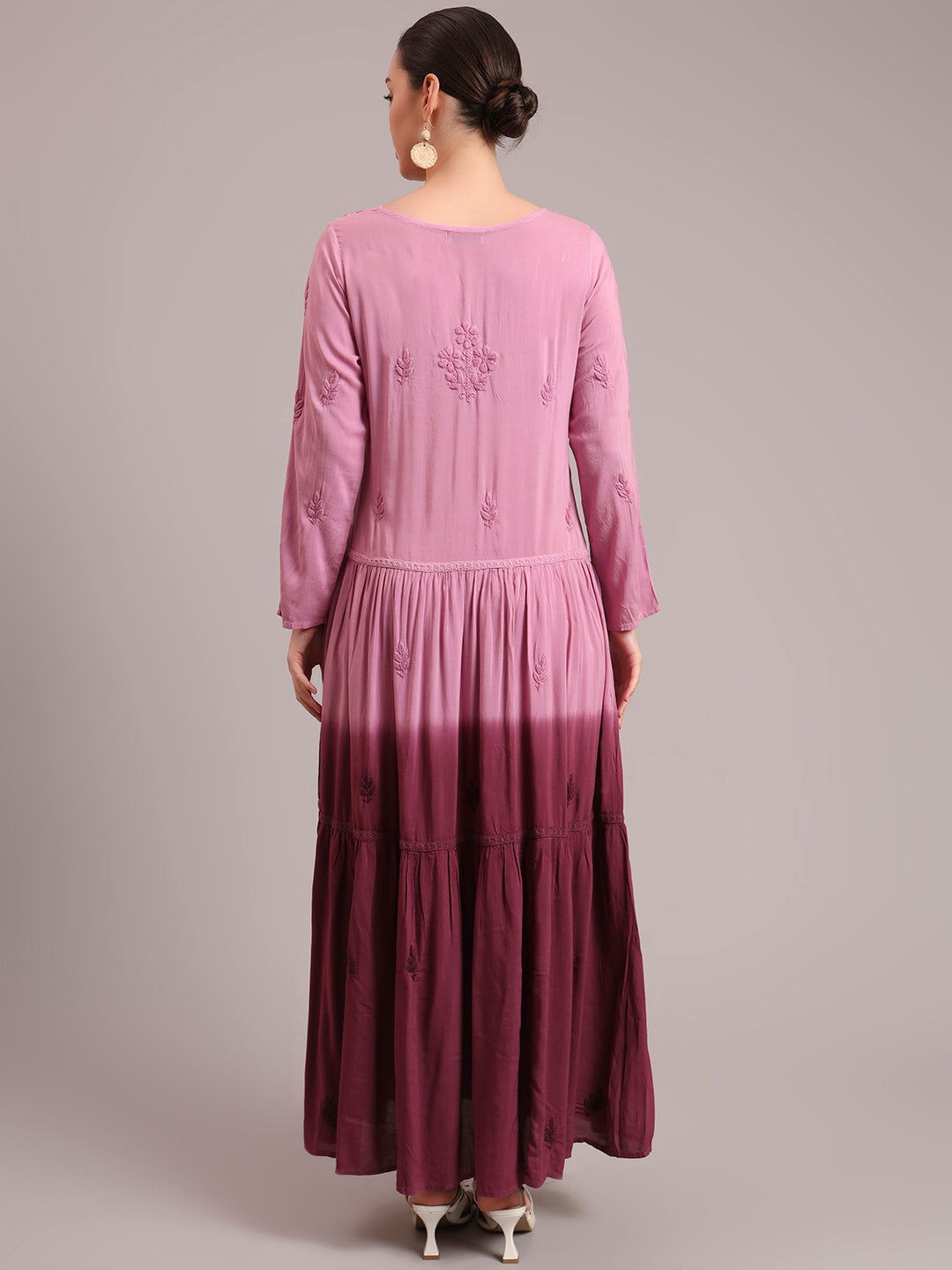 Hand Embroidered Chikankari Modal Ombre Jalabiya-AL4047 Onionpink
