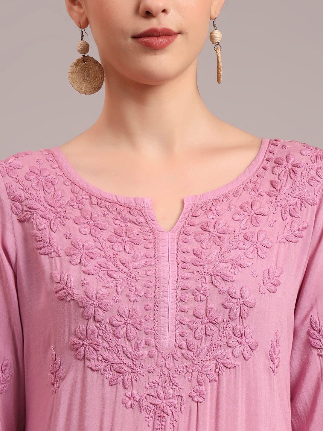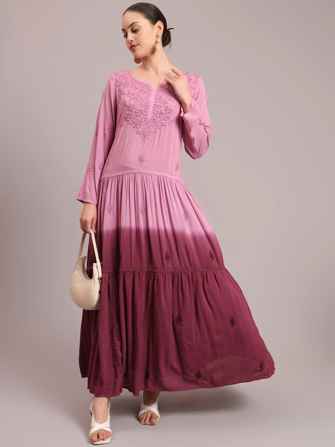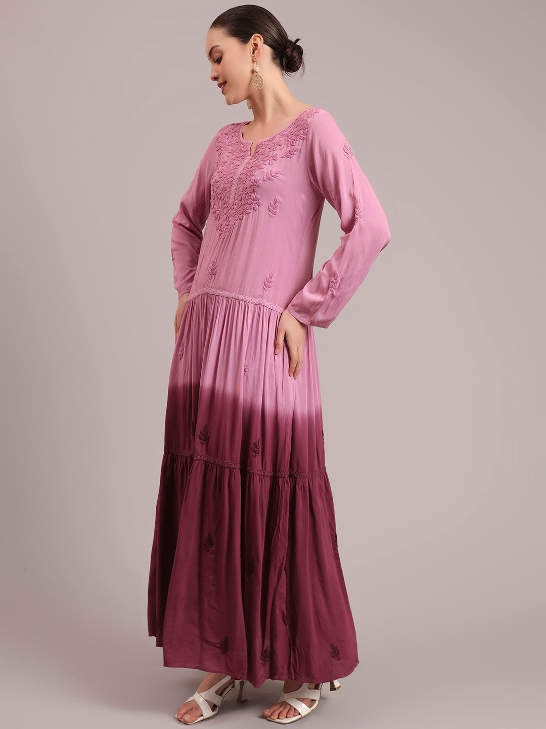 Hand Embroidered Chikankari Modal Ombre Jalabiya-AL4047 Onionpink