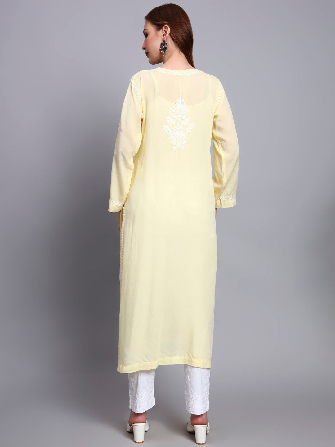 Hand Embroidered Chikankari Modal Straight Kurta-AL3683 Yellow