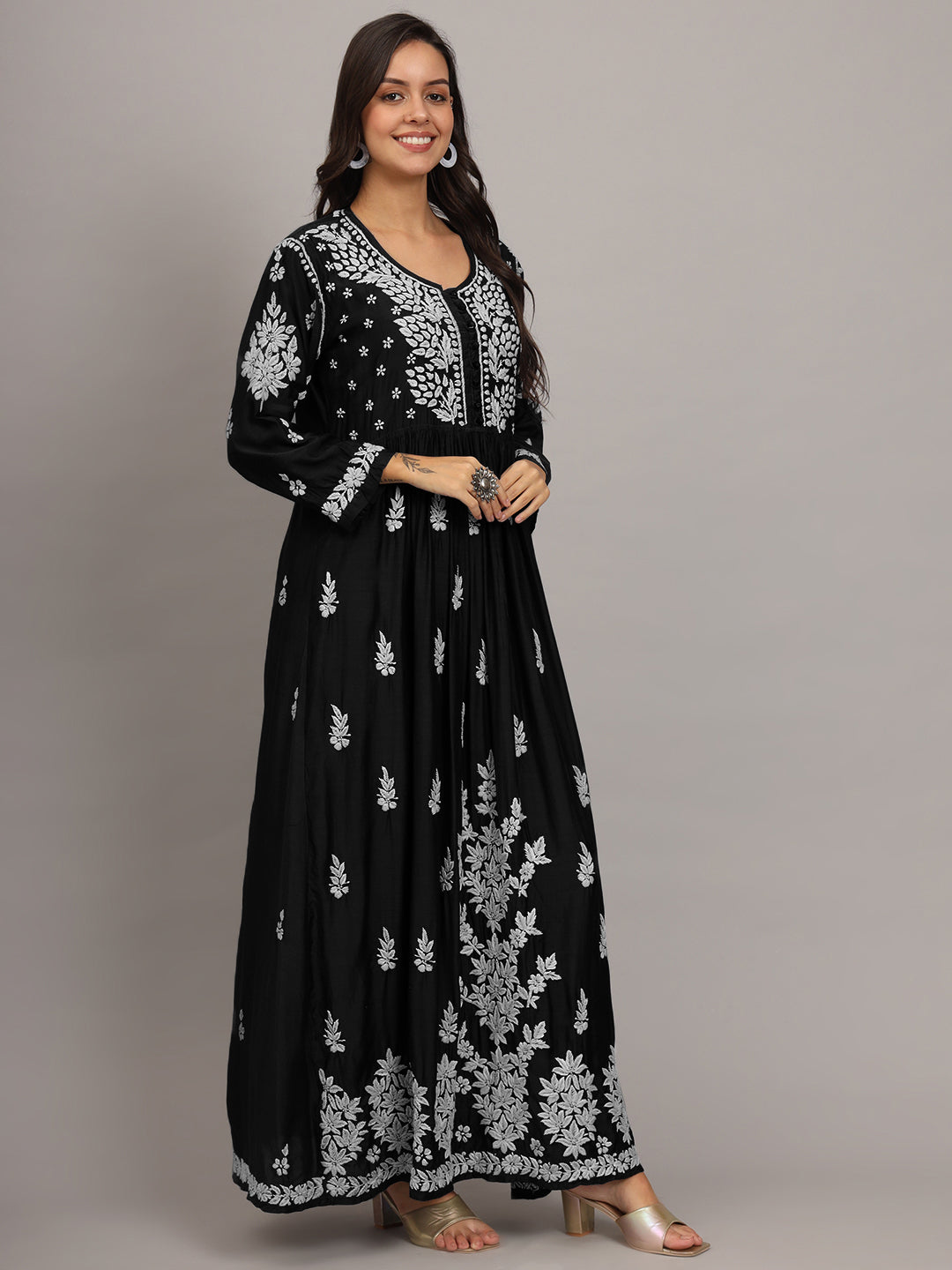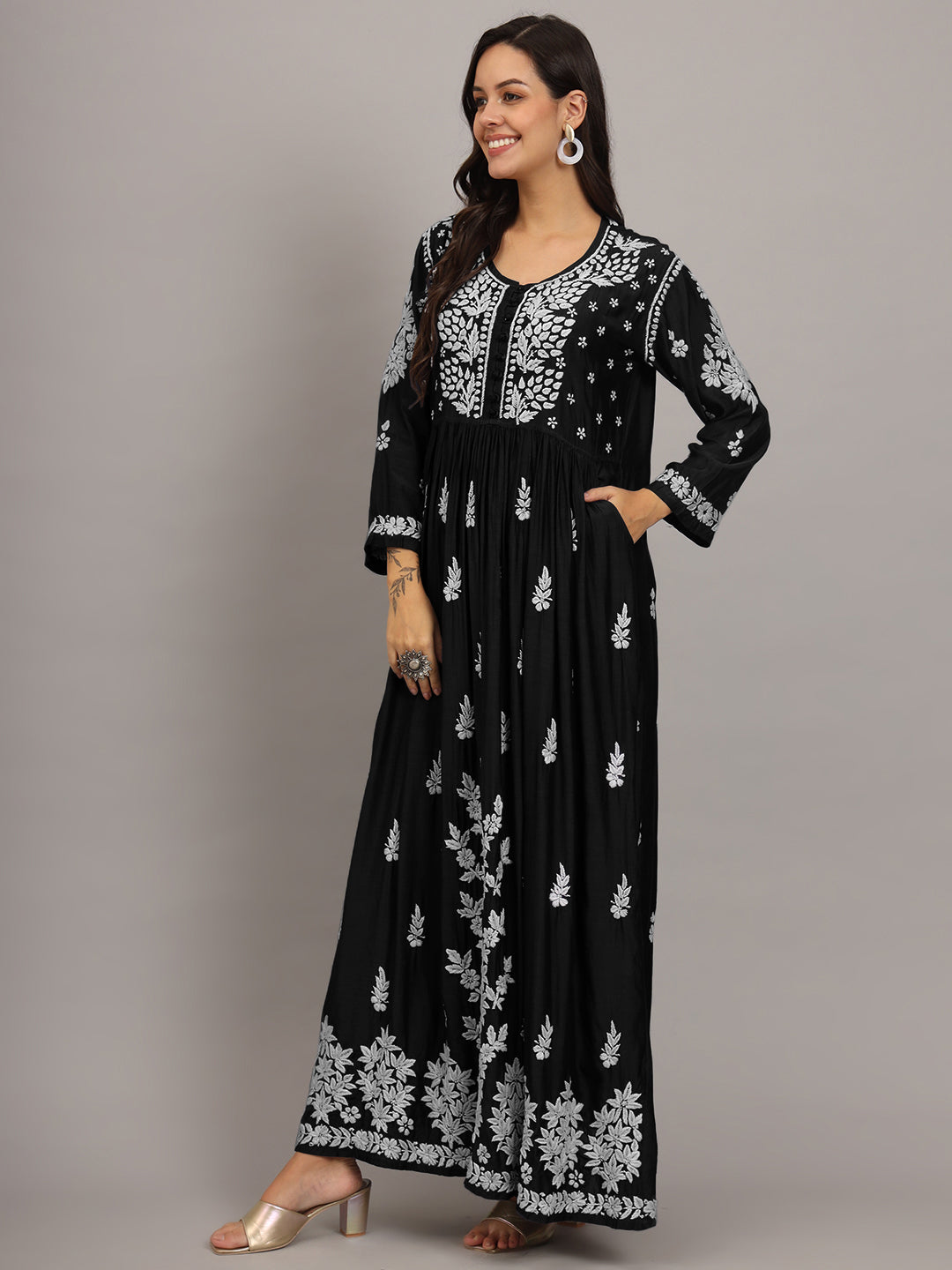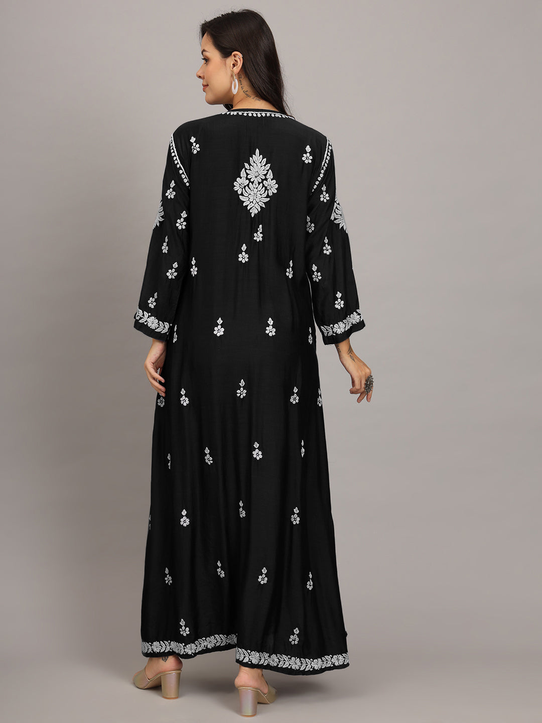 Hand Embroidered Chikankari Muslin Jalabiya-AL4017 Black