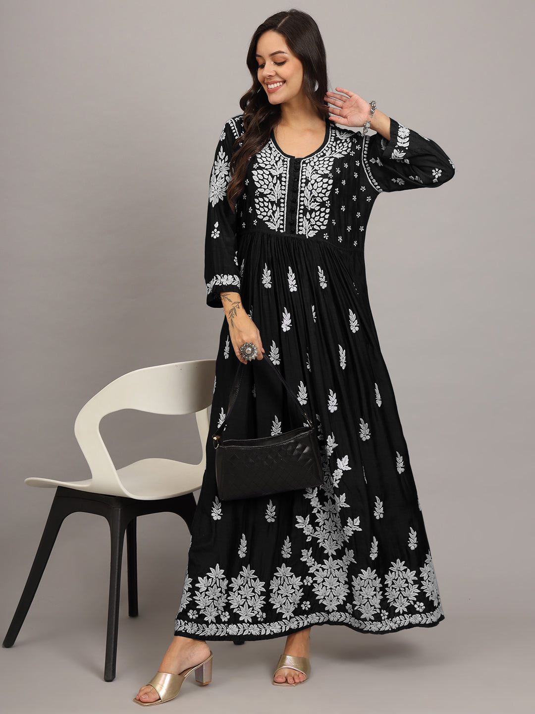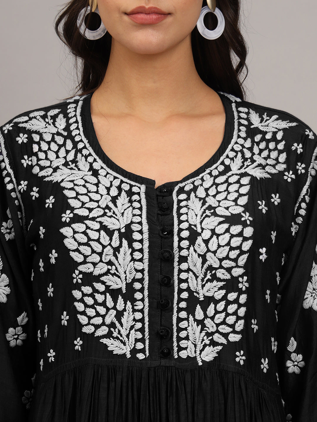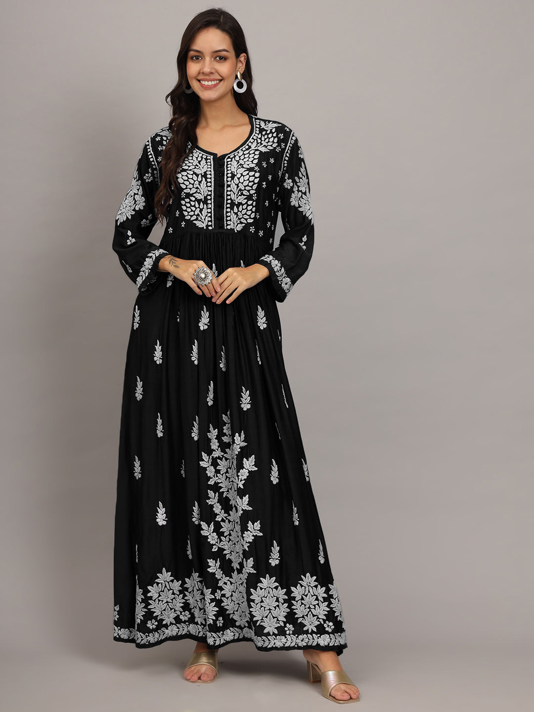 Hand Embroidered Chikankari Muslin Jalabiya-AL4017 Black