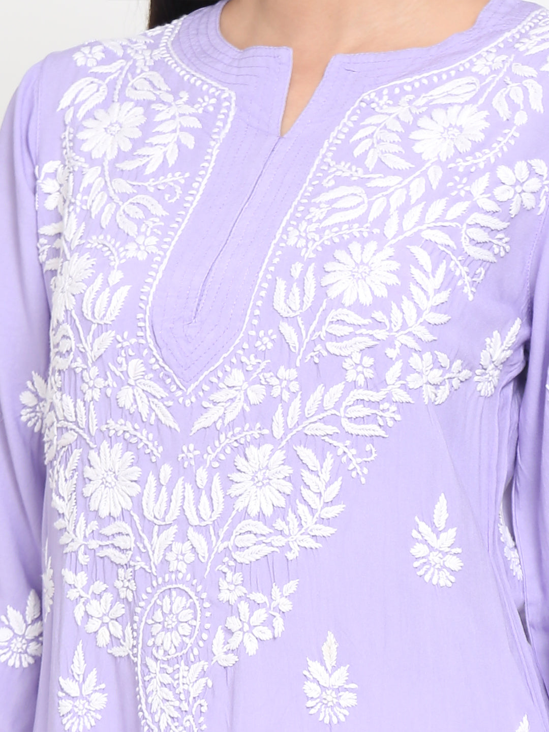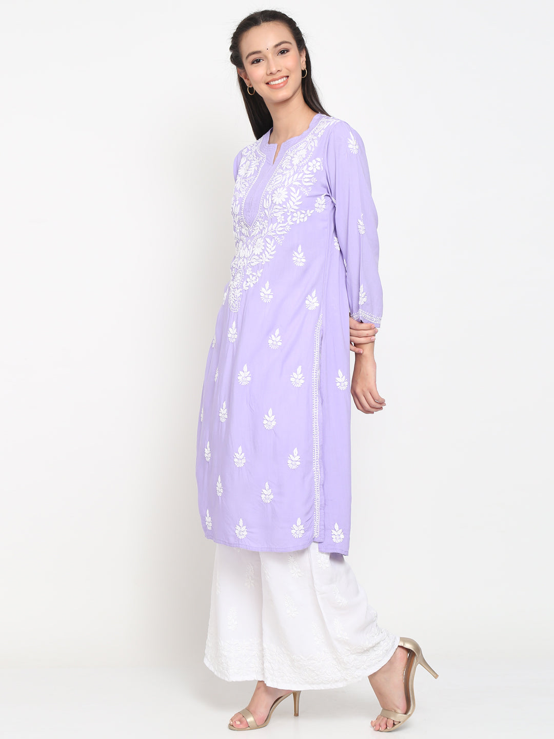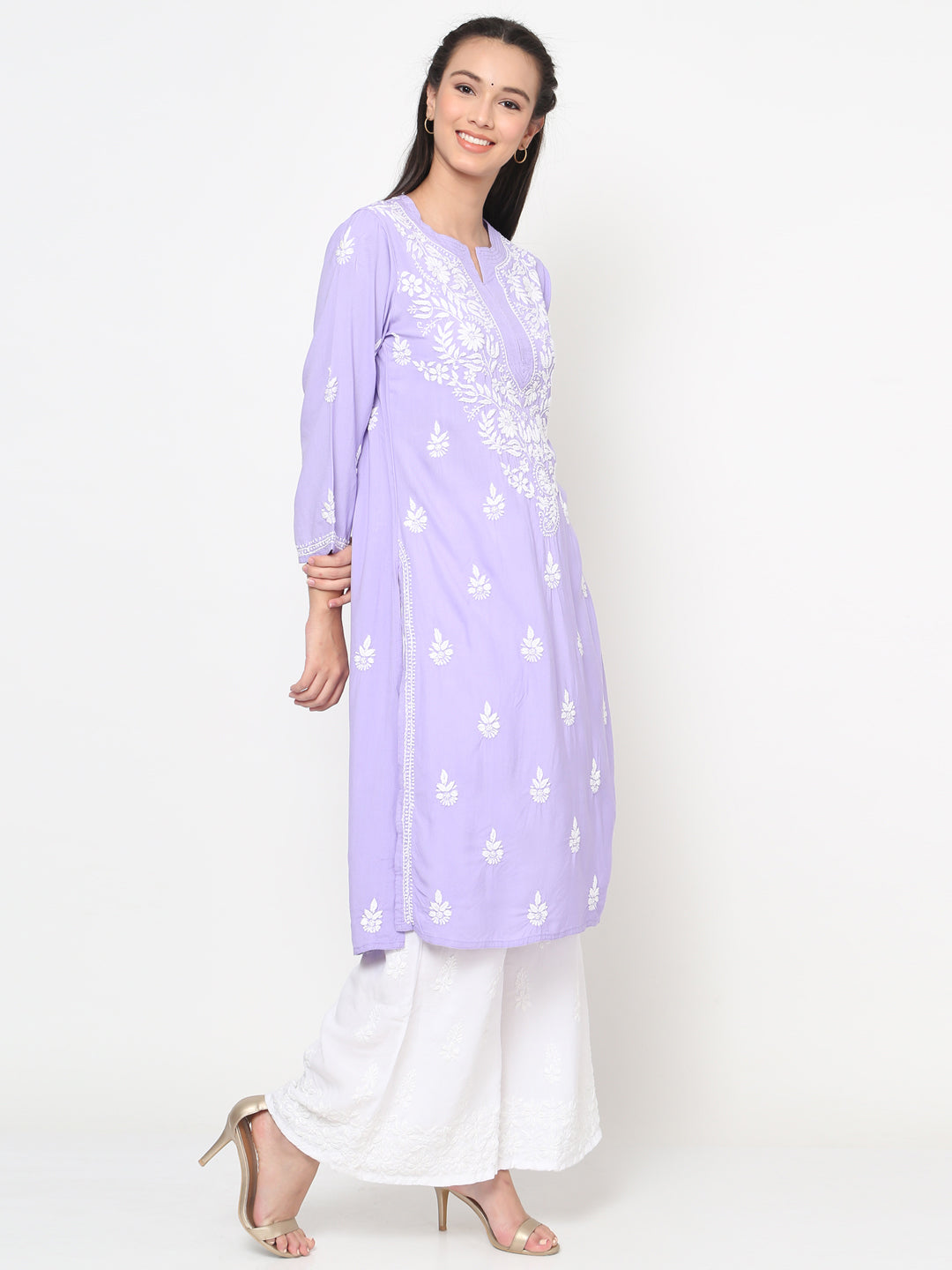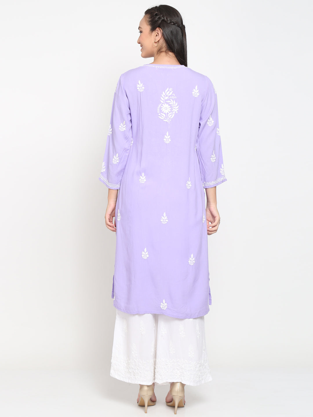 Hand Embroidered Chikankari Rayon Straight Kurta-AL3451 Mauve