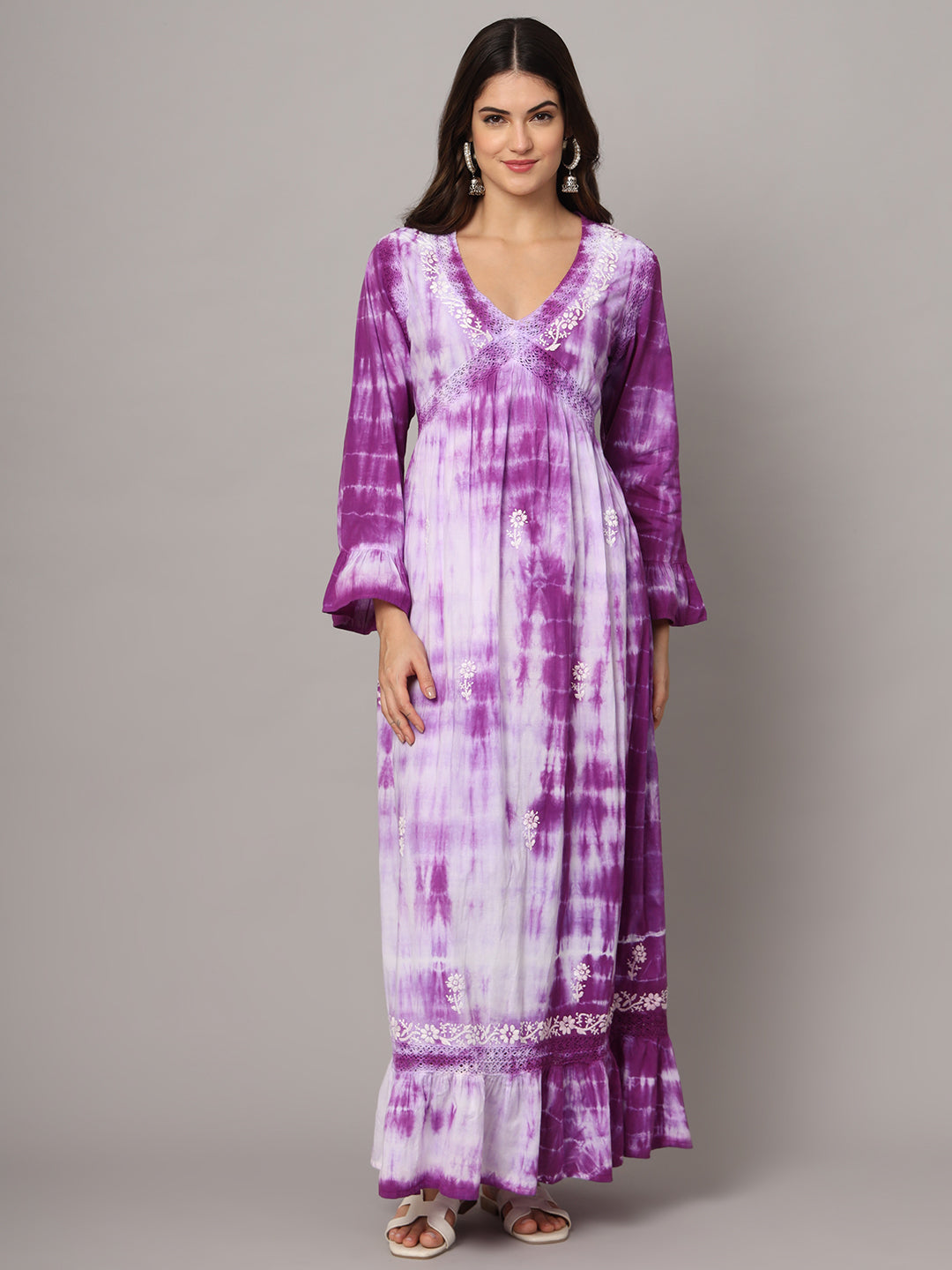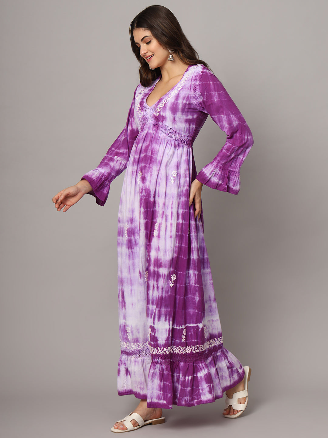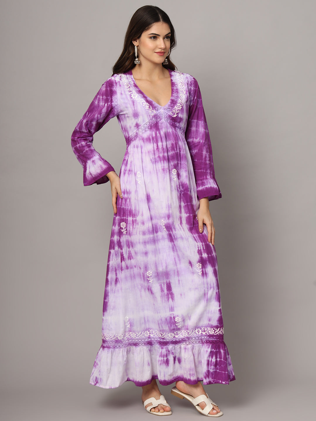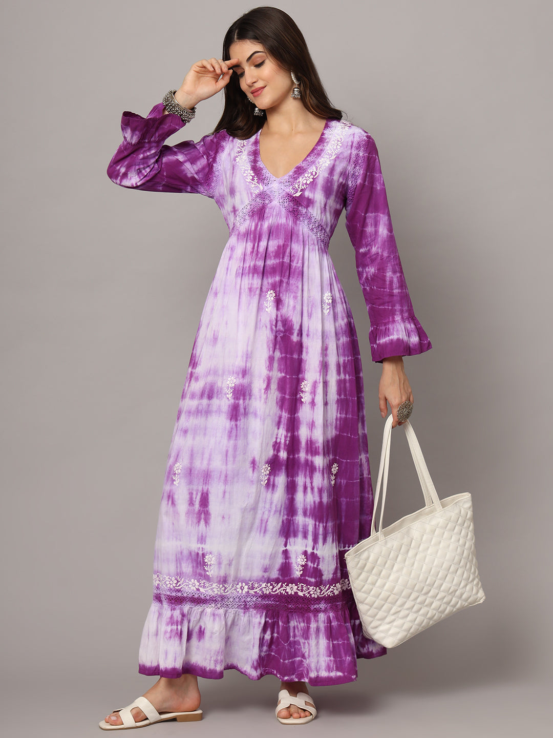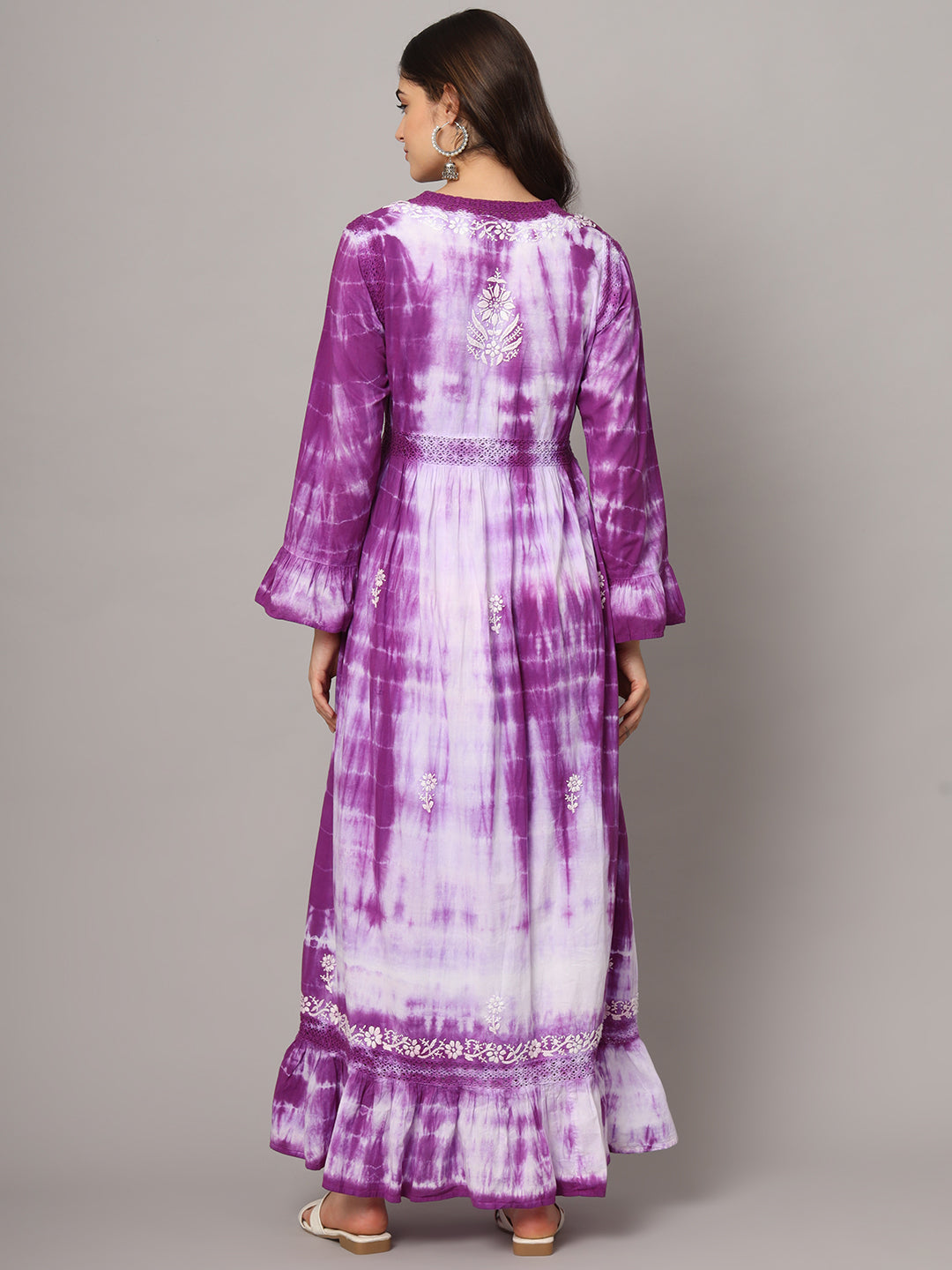 Women Chikankari Hand Embroidered Cotton Jalabiya in Tie-Dye shades-AL2160 Mauve