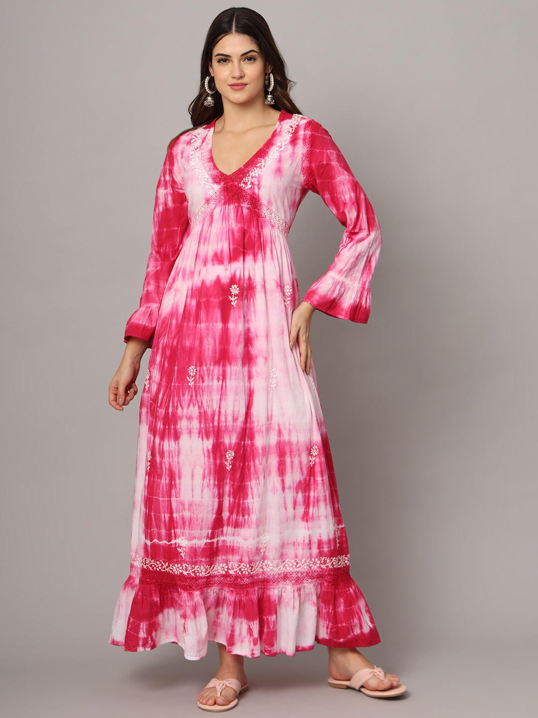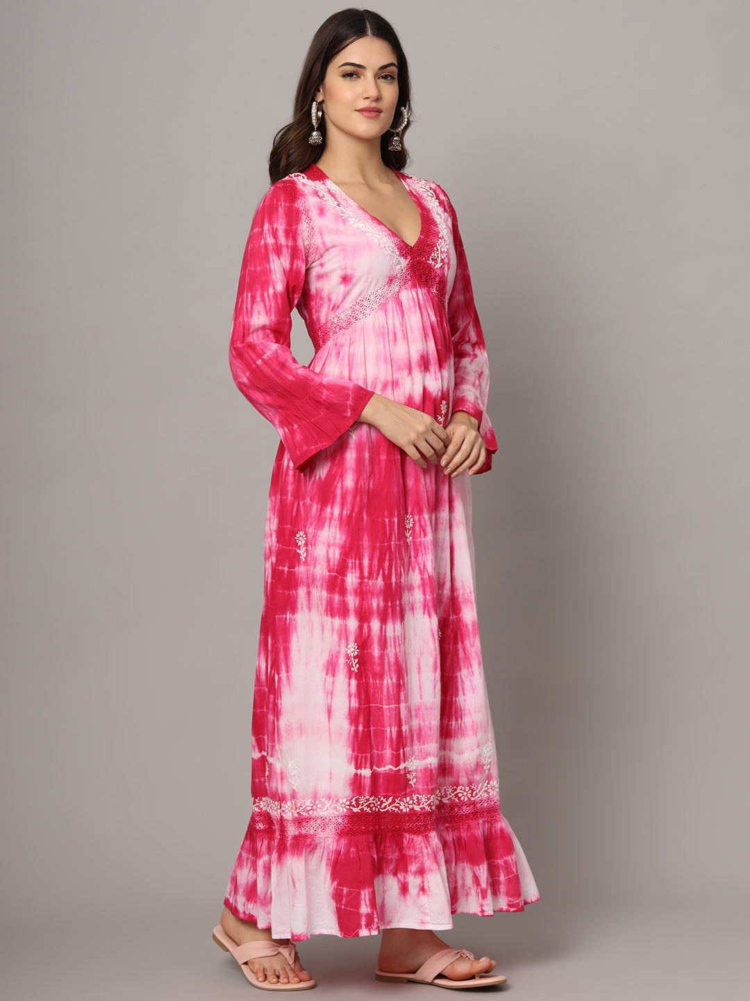 Women Chikankari Ethnic motifs embroidered, V- neck Jalabiya