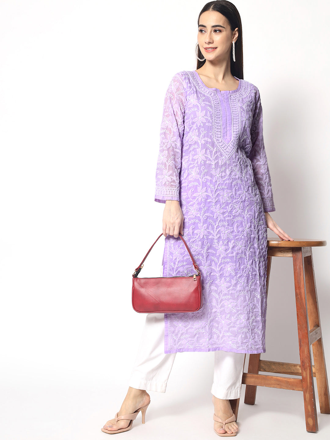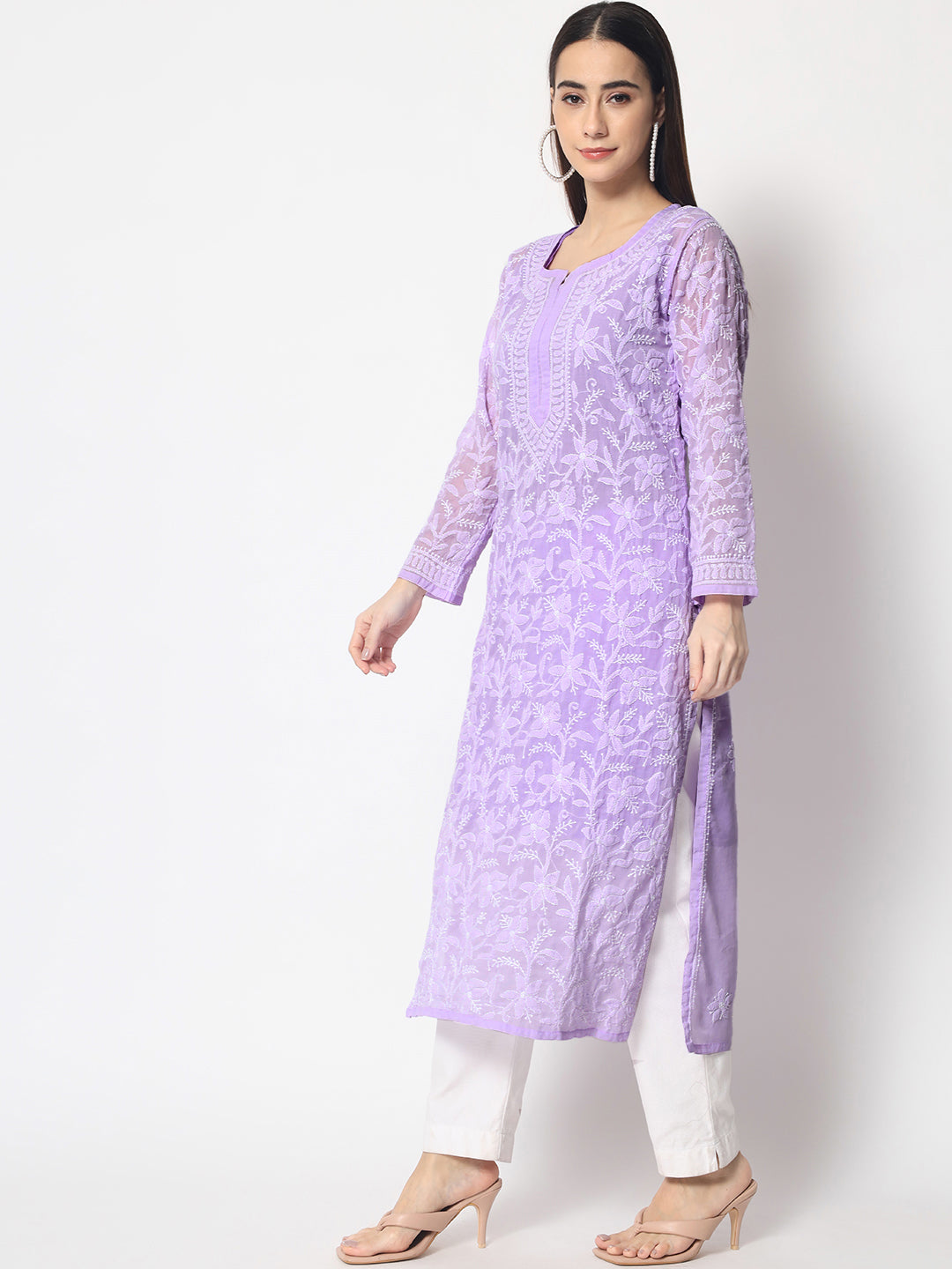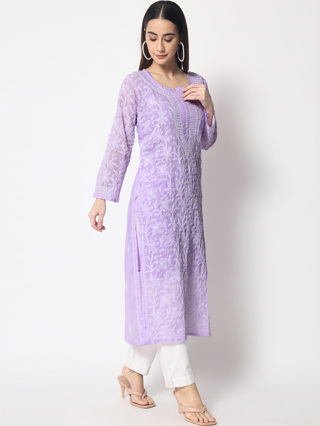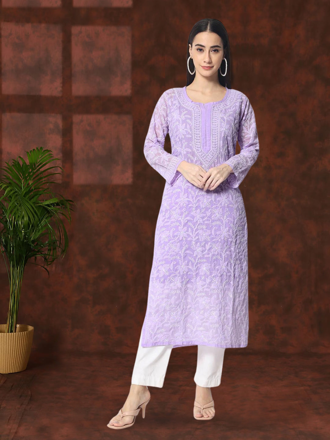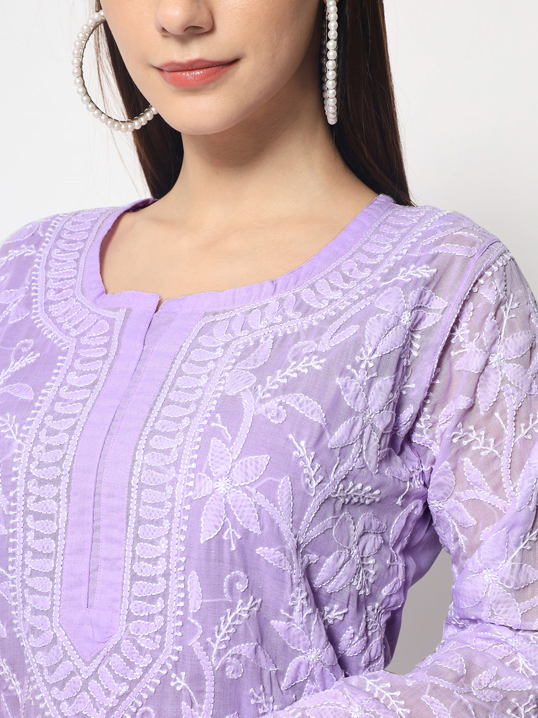 Women Hand Embroidered Chikankari Cotton Straight Kurta- AL3592 Lavender