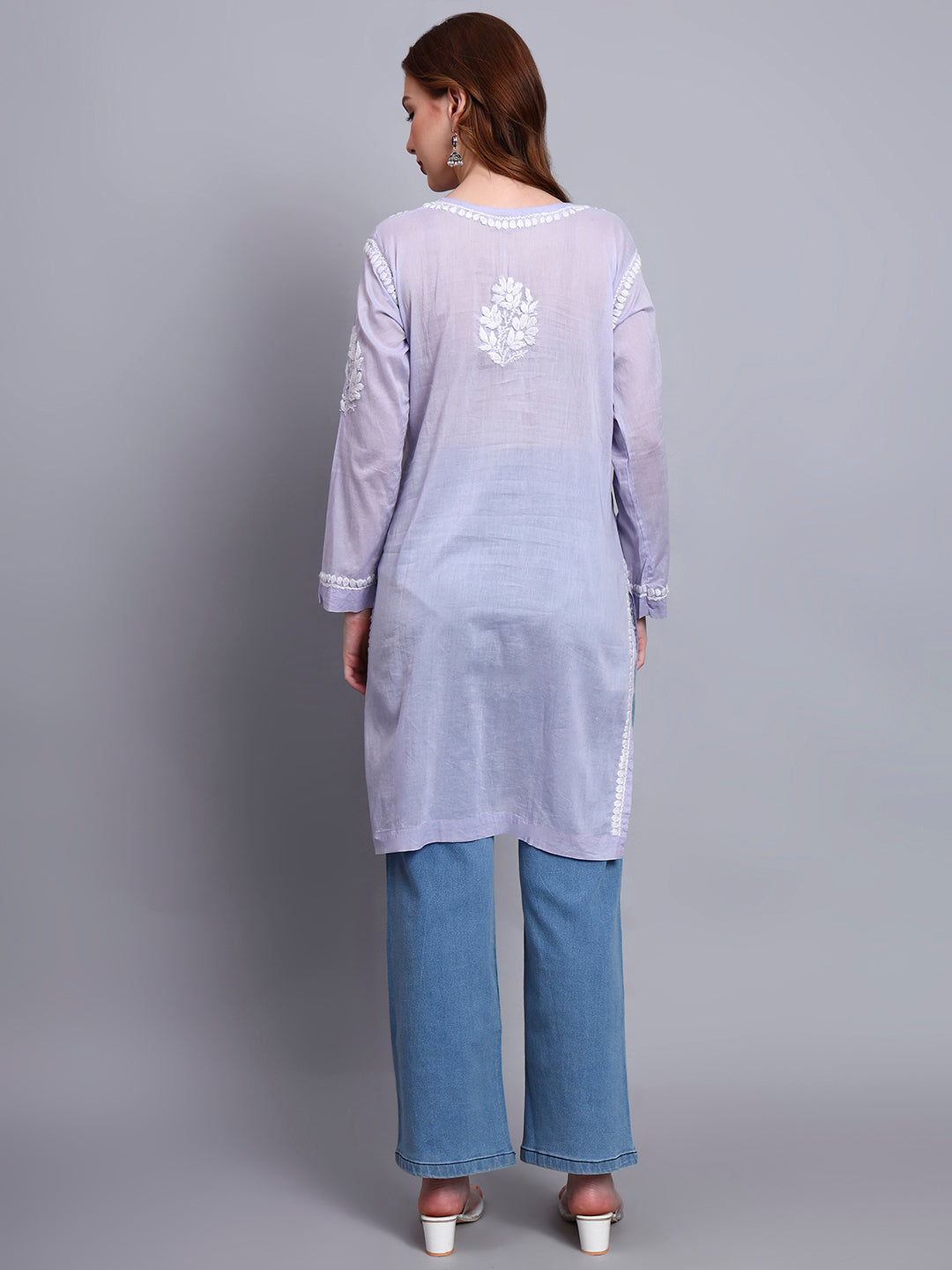 Women Hand Embroidered Chikankari Cotton Kurti -AL3685 Mauve