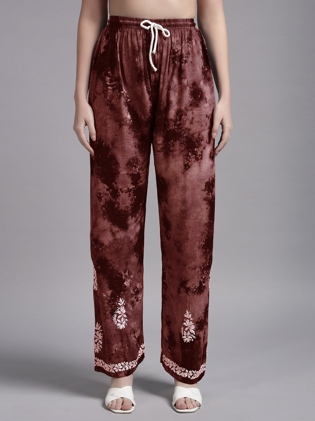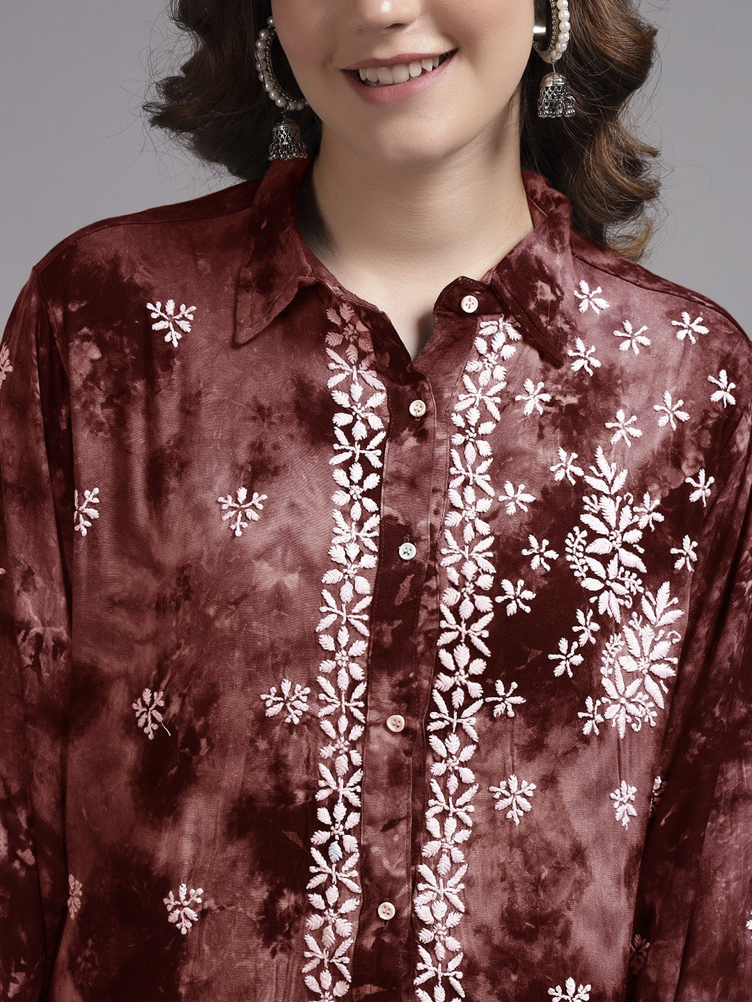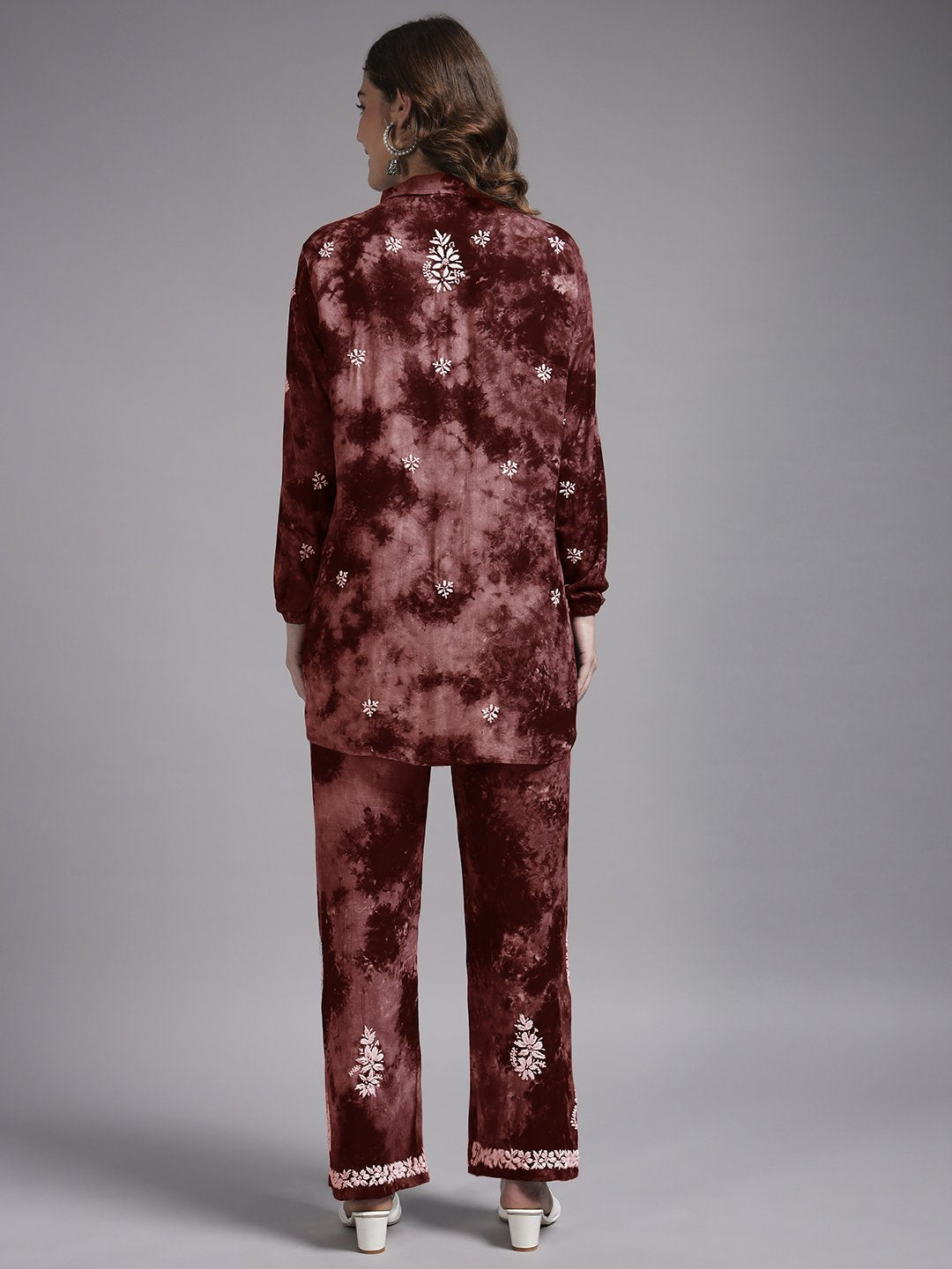 Women Hand Embroidered Chikankari Rayon Co-ord Set-AL4093KS Brown