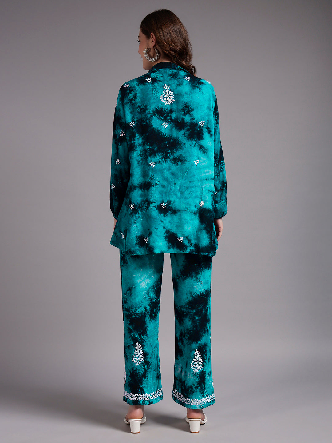Women Hand Embroidered Chikankari Rayon Co-ord Set-AL4093KS Rama Green