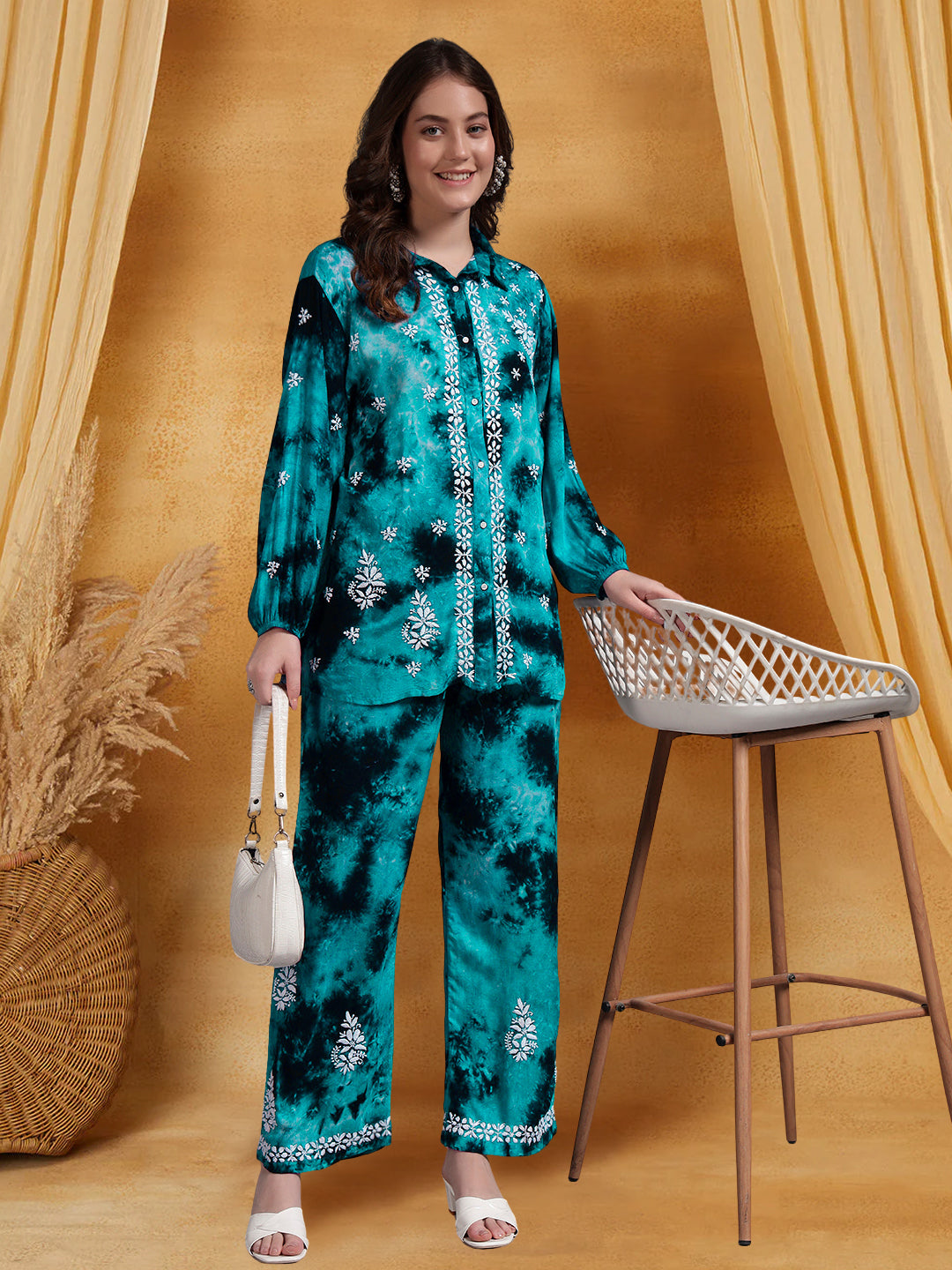 Discover effortless style with our luxurious Rayon Tie Dyed Chikankari Women's 2 Piece Co-ord Set. Crafted from ultra-soft, breathable rayon fabric, this set offers unmatched comfort while ensuring you look chic and polished. The intricate print adds a touch of sophistication, beautifully complementing the sleek straight silhouette. Whether you're dressing up for a casual day out or an evening event, this versatile set is your go-to for all occasions. Elevate your wardrobe with a perfect balance of comfort and elegance.