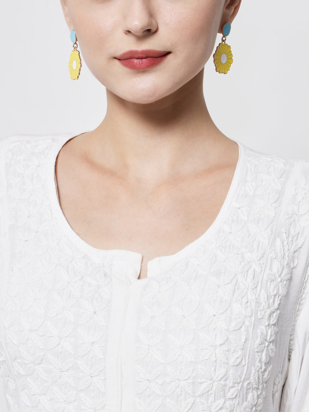 Women Hand Embroidered Chikankari Rayon Kurta Round Neck Three-Quarter Sleeve